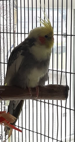 When Cuddles arrived, he was covered in soot and struggling with feather plucking on his chest. It took several soothing baths to restore his bright, peachy feathers and multiple vet visits to